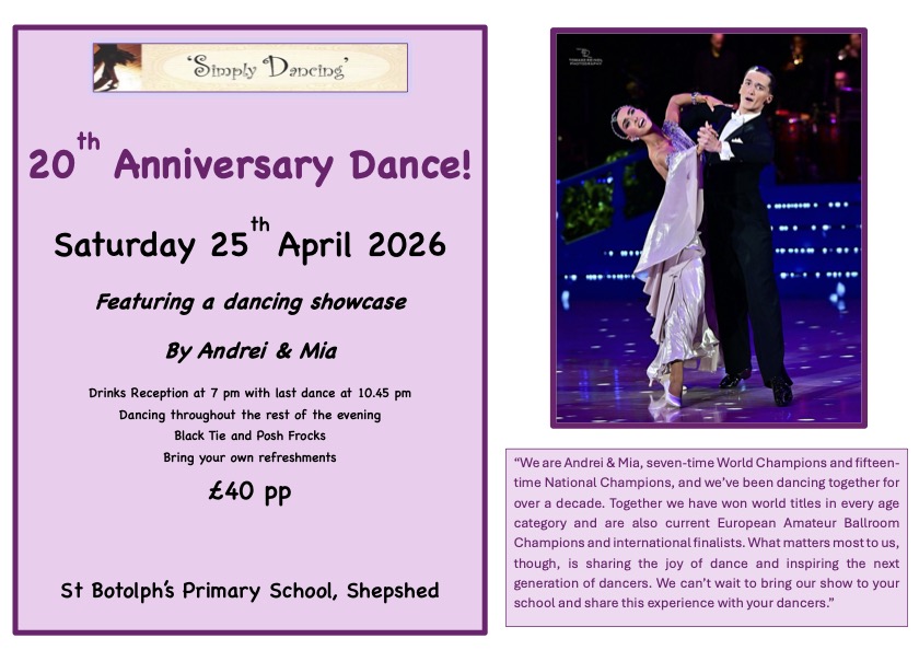 Saturday Social Dates Pupils only for all dates. 14th February 14th March 25th April - 20th Anniversary Dance - Pre booking now